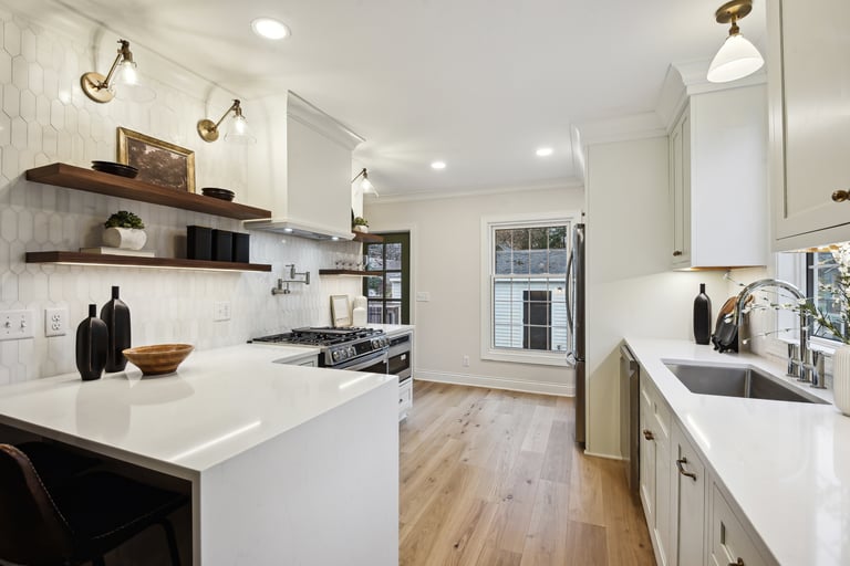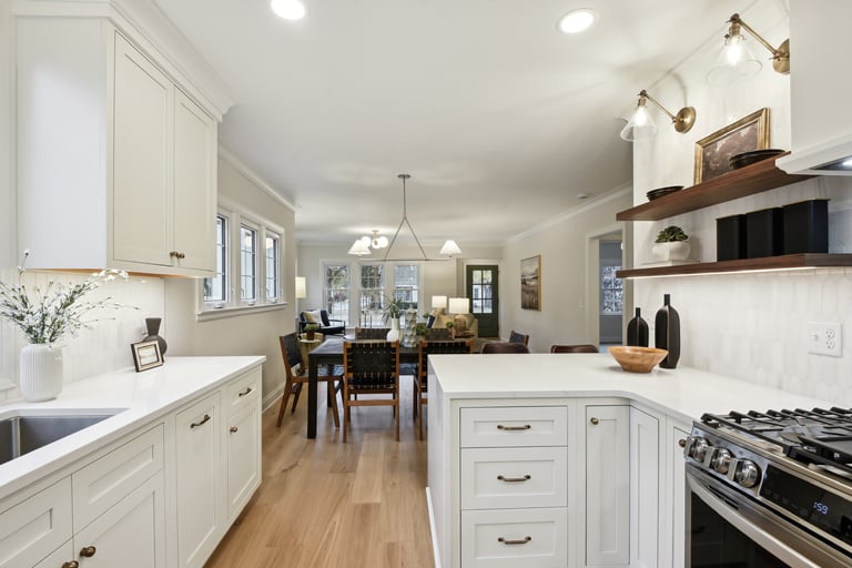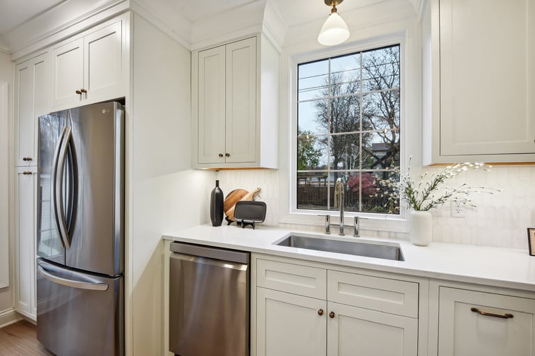 This Minneapolis Tudor received a gorgeous new kitchen flooded with light and functionality. Inset Cabinetry, polished nickel faucets and warm brass light fixtures make this space both timeless and beautiful.